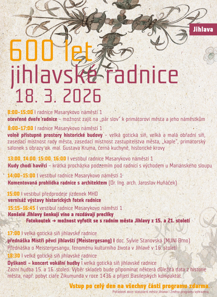 Celý program bude probíhat od 8:00 do 19:30. V rámci oslav bude v malé obřadní síni – tzv. kapli od 8 do 17 hodin vystavena faksimile Geinhausenova kodexu,
