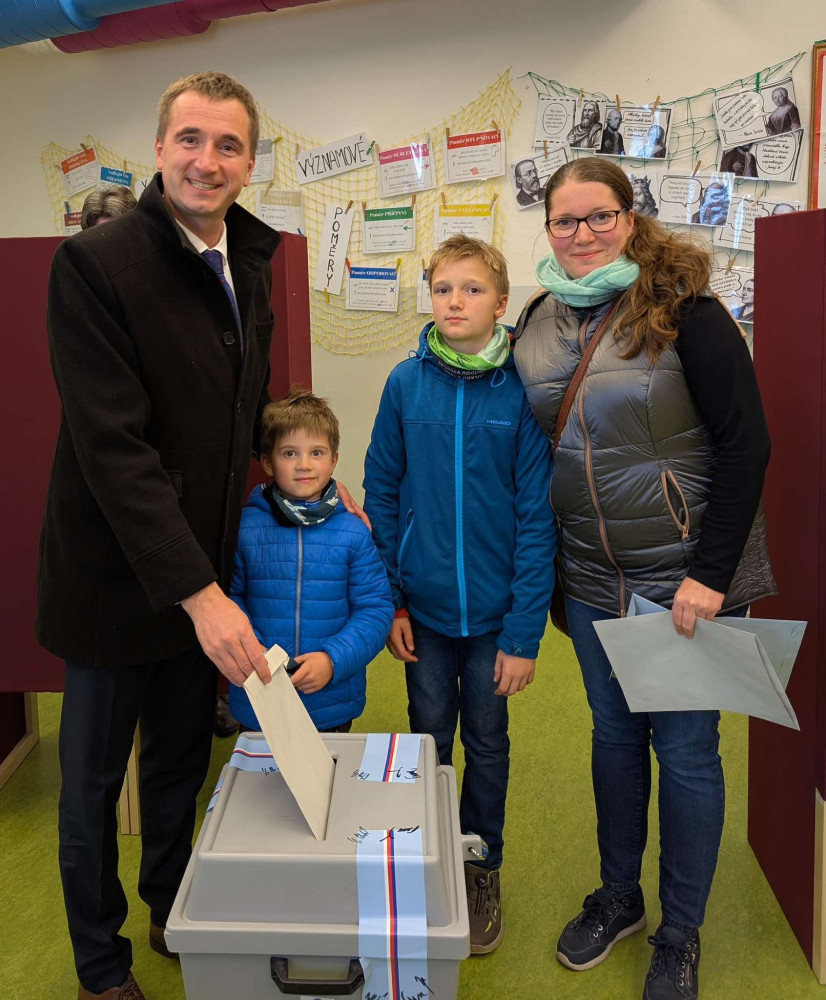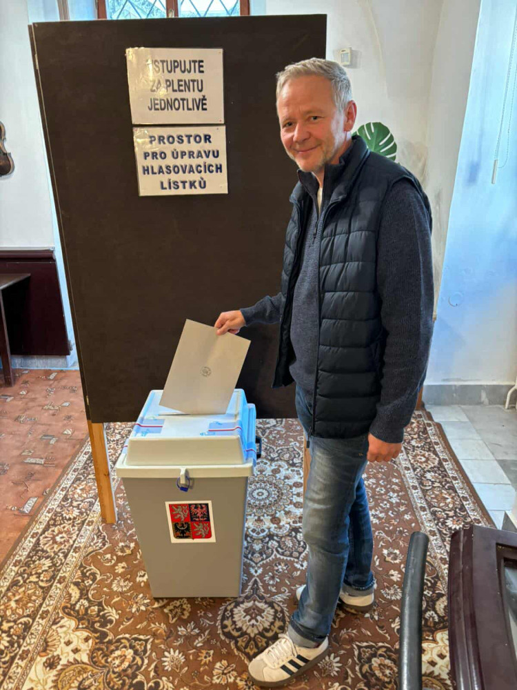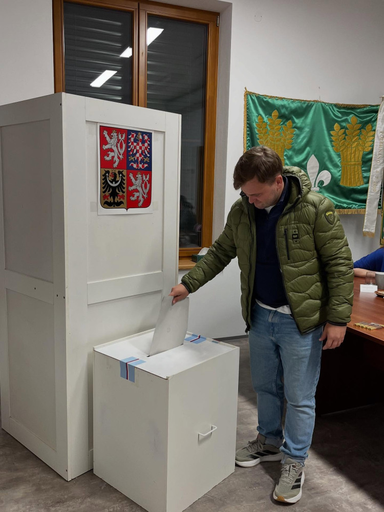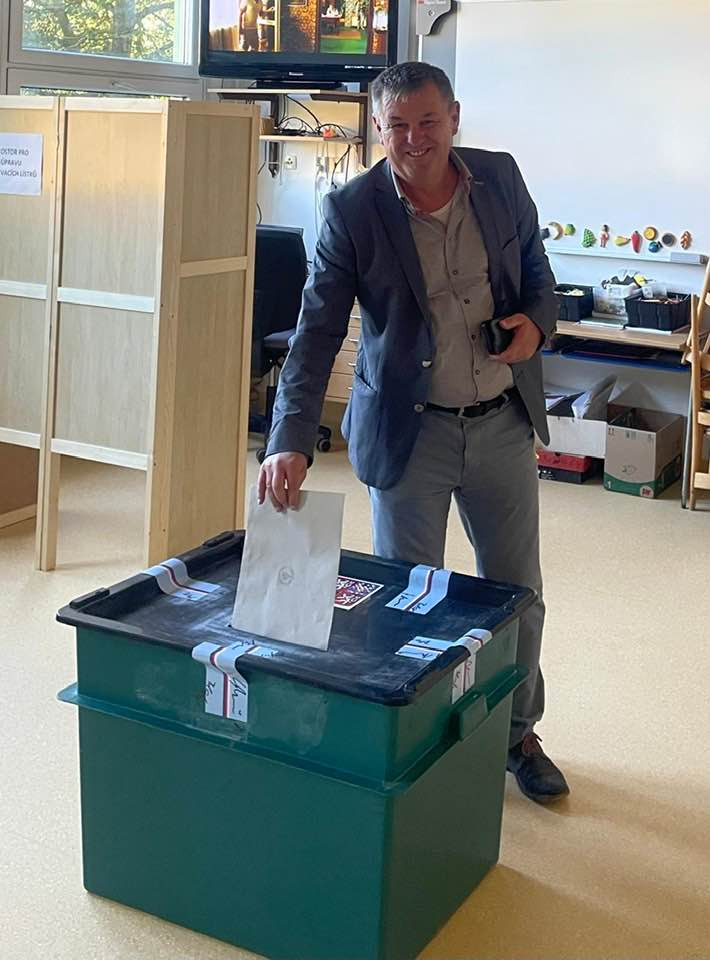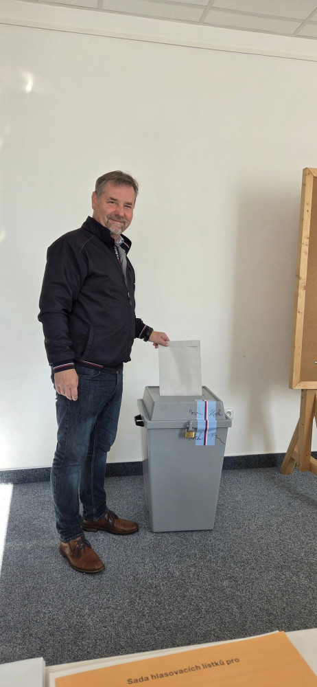 Volby 2025: Regionální politici z Vysočiny ve volební místnosti