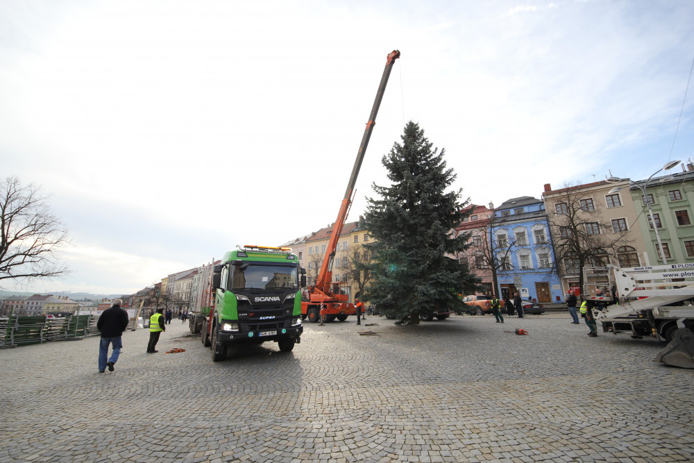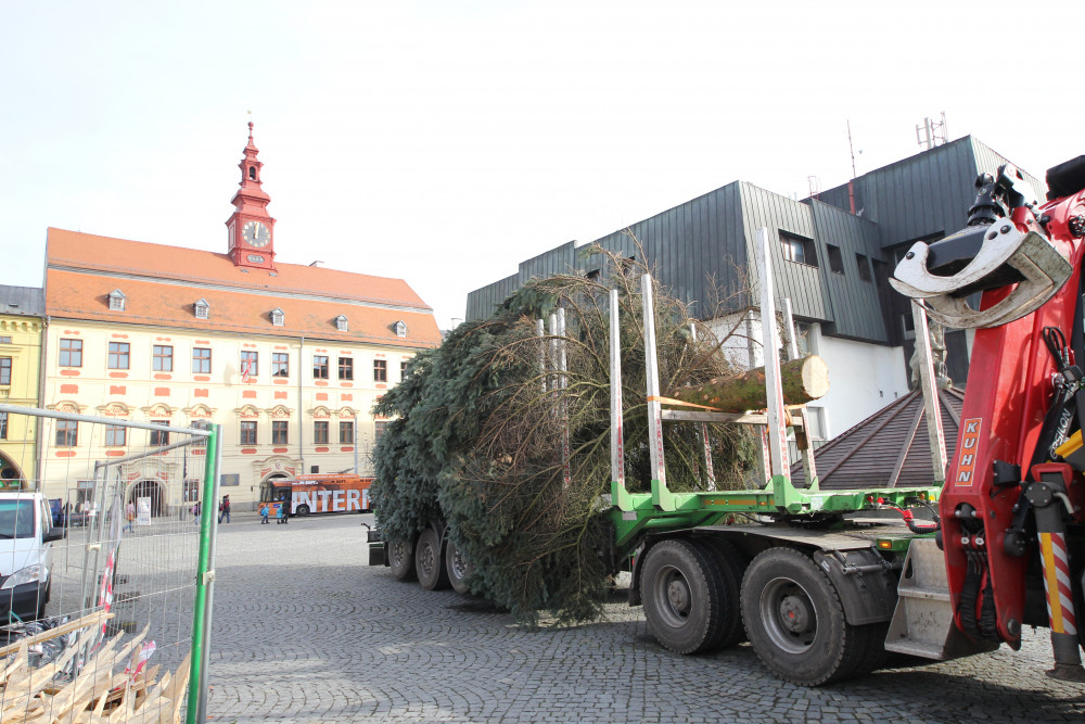 Na jihlavském Masarykově náměstí už stojí vánoční strom. Rozzáří se  1. prosince