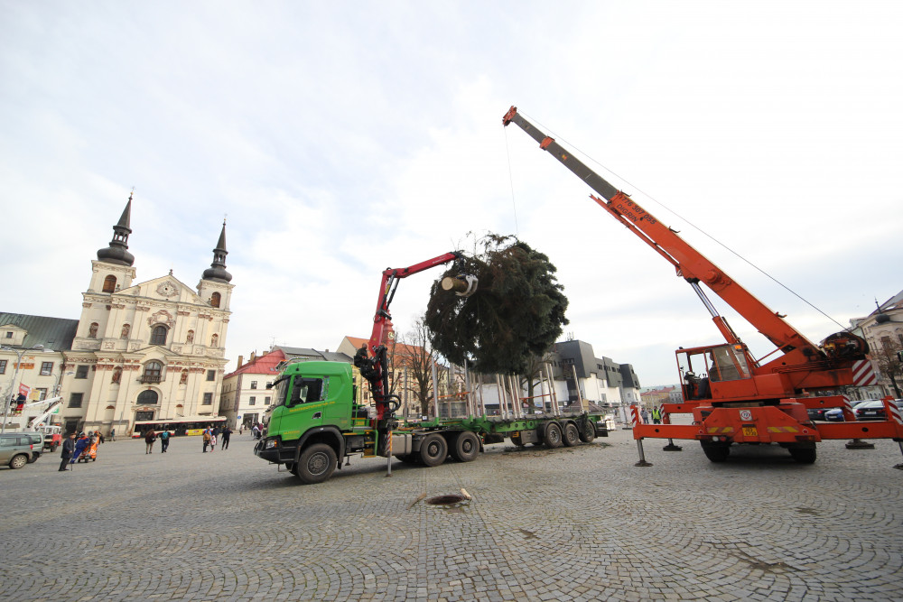FOTO, VIDEO: Na jihlavském Masarykově náměstí už stojí vánoční strom. Rozzáří se 1. prosince