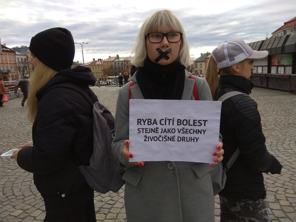 Na jihlavském náměstí se tiše protestovalo proti zabíjení kaprů na Vánoce