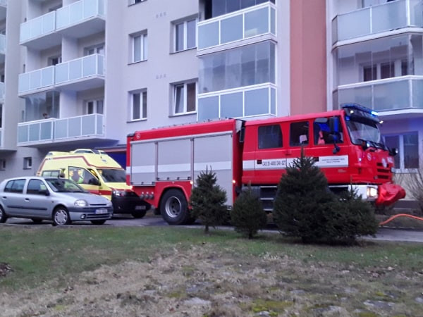 Mladý muž se při požáru bytu nadýchal zplodin. Byl převezen na novoměstské ARO