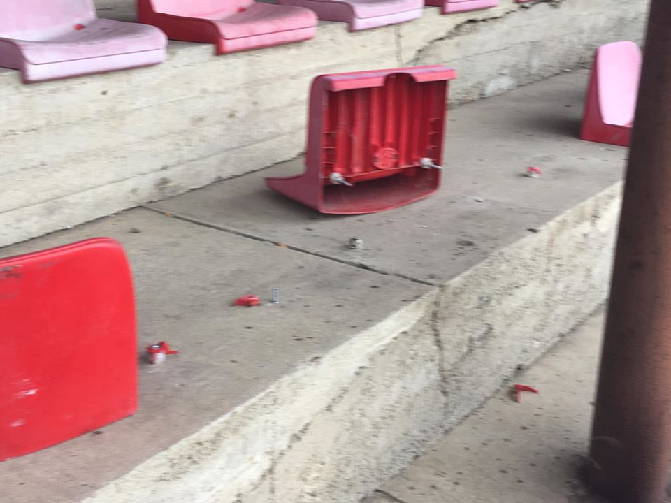 Snaha bedřichovských nadšenců poničena, vandalové vytrhali sedačky z tribuny fotbalového hřiště