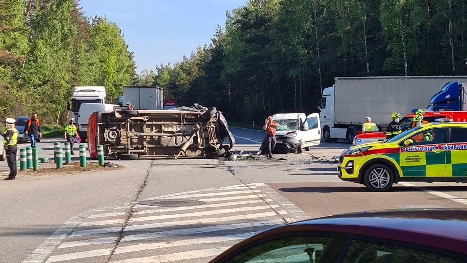 AKTUÁLNĚ: Dopravní nehoda dvou osobáků a dodávky na přivaděči. Tři lidé se zranili