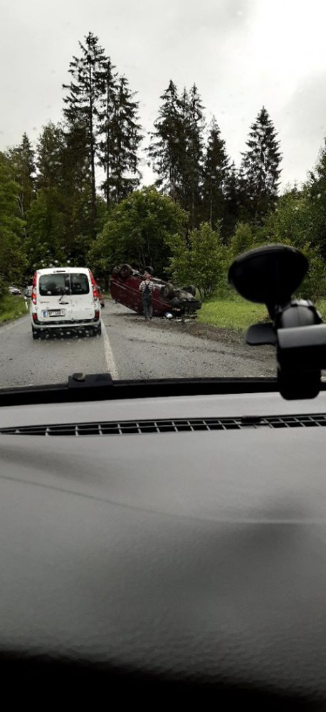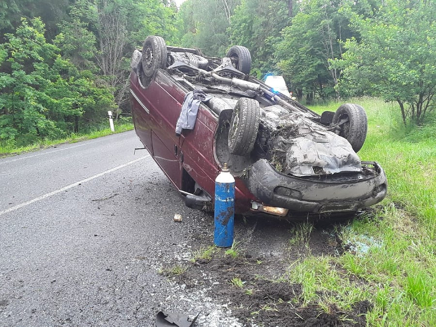 Záchranáři vyjížděli k nehodě u Kostelce. Auto skončilo na střeše, jeden člověk se zranil