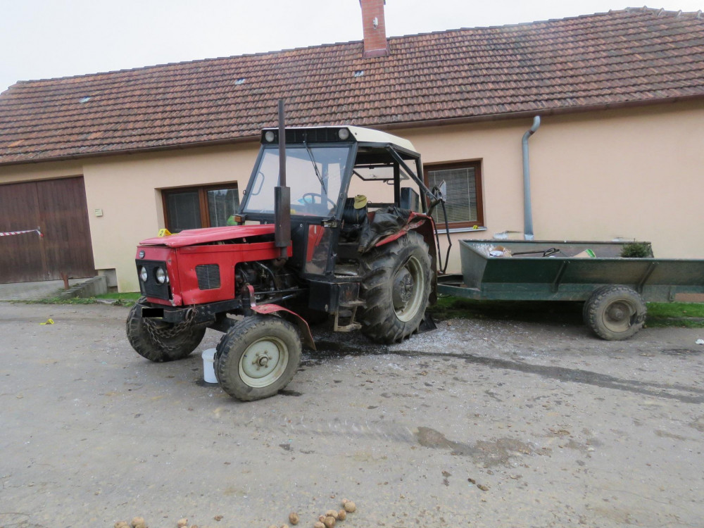 Kuriózní střet dvou traktorů. Jeden řidič nadýchal skoro tři promile, druhý neměl řidičák