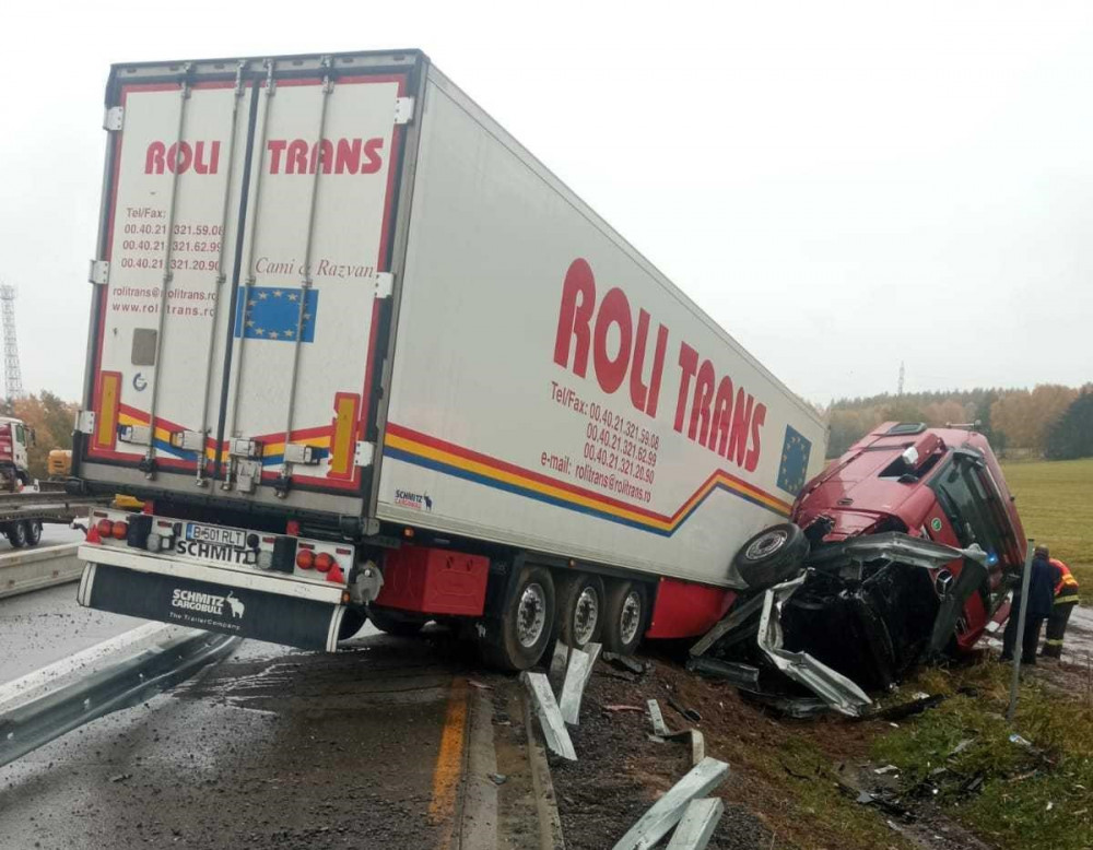 Na 97. kilometru D1 směrem na Brno havaroval kamion, místem mohou projet pouze osobní vozidla