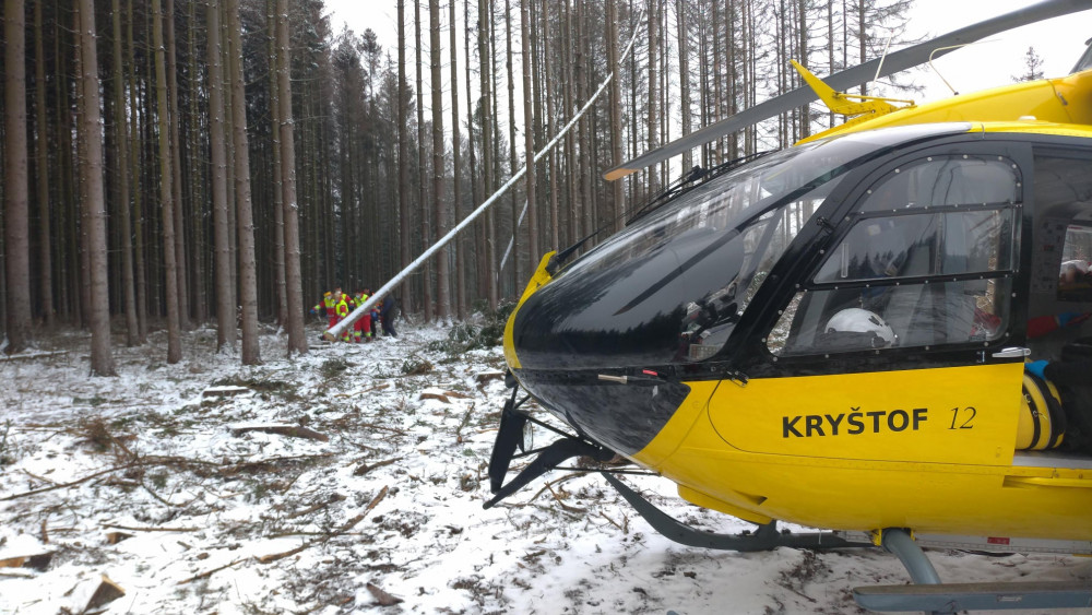 Na muže v lese spadl strom, těžce se zranil. Přiletět musel záchranářský vrtulník