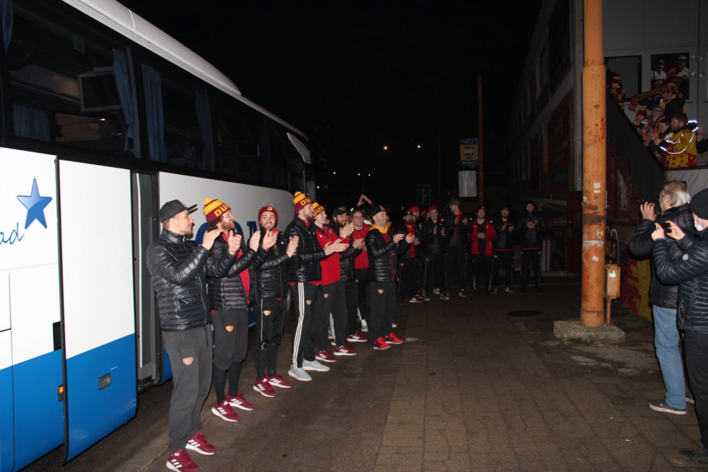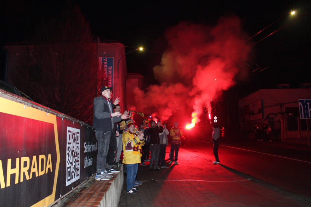 Fanoušci vítali vítězné jihlavské hokejisty. Děkujeme, ale shlukováním si můžete zadělat na problémy, vzkazuje klub