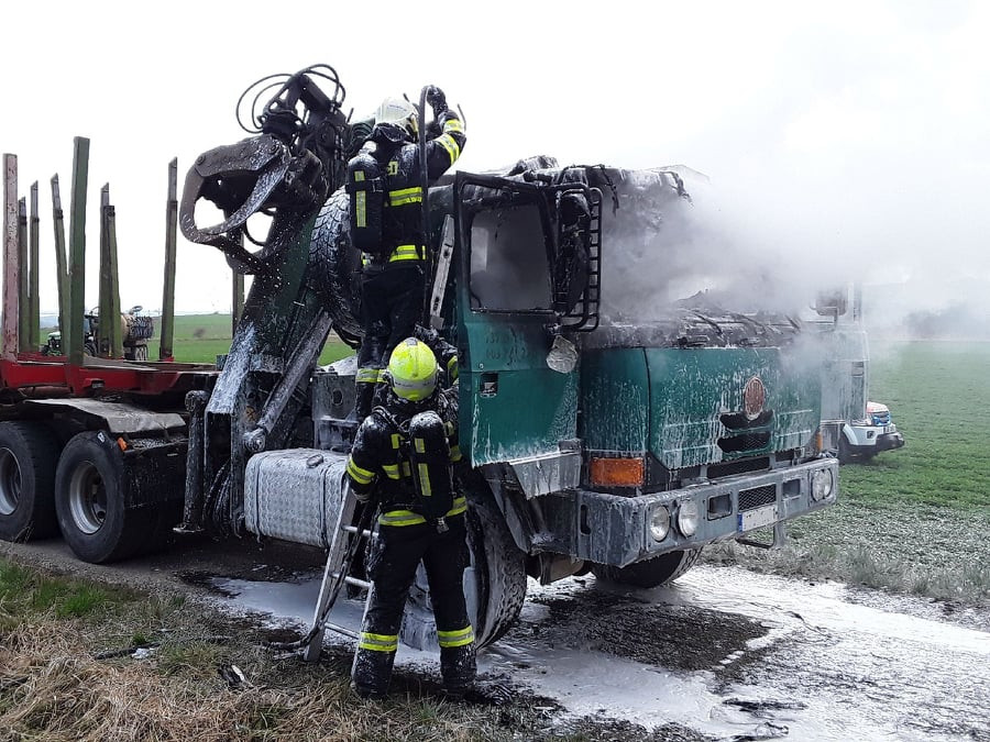 Hasiči zasahovali u požáru nákladního auta. Plameny napáchaly půlmilionovou škodu