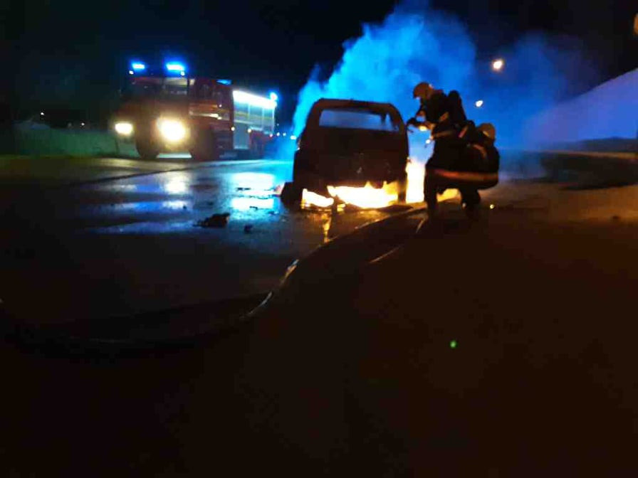 V Pístově hořelo osobní auto. V době příjezdu hasičů byl už zcela v plamenech
