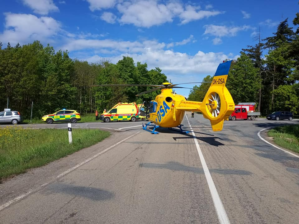Střet motorkáře s cyklistou si vyžádal zásah vrtulníku. Škoda se dostala na 55 tisíc korun
