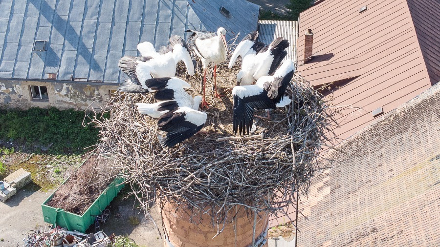 Jeden z rodičů čápat uhynul při bouřce. Záchranáři z Pavlova tak řešili Sophinu volbu