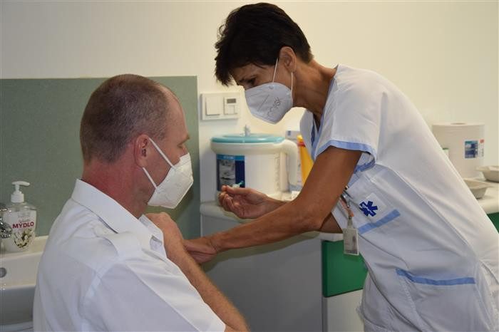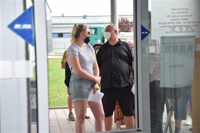 V Hruškových Dvorech dnes čekaly na zahájení očkování bez registrace desítky lidí