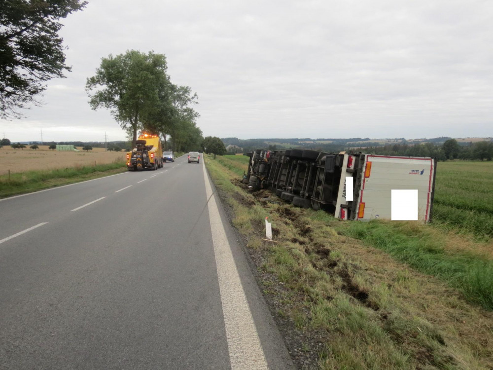 Řidič plně naloženého tahače během cesty popíjel ve velkém, po havárii nadýchal 2,7 promile