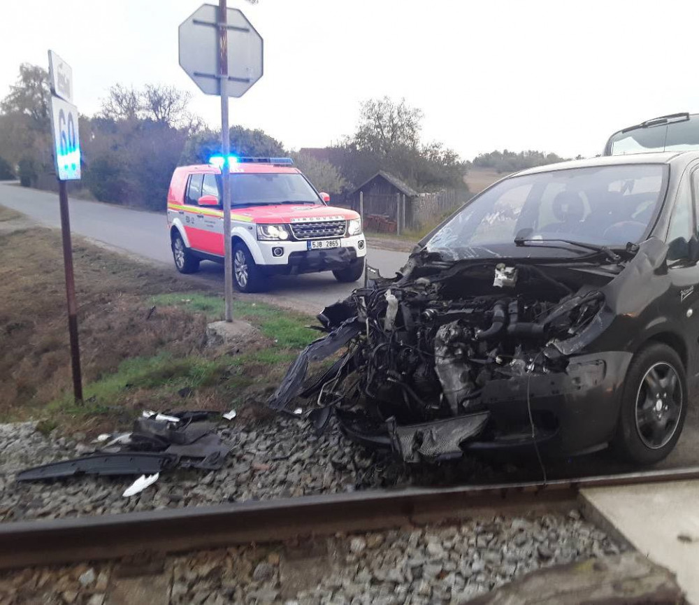 Ranní střet vlaku s osobním autem. Dvacet cestujících muselo přestoupit na autobus