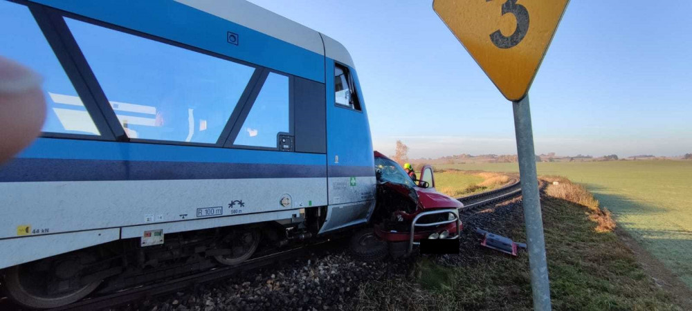 Na přejezdu na Jihlavsku se srazilo auto s osobákem. Řidič auta na místě zemřel