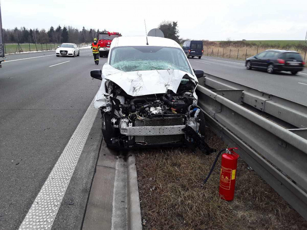 Na D1 se srazilo osobní auto s náklaďákem. Zásah na místě stále probíhá