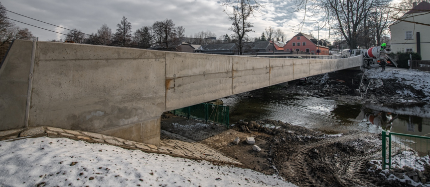 Přes řeku ve Starých Horách již po nové lávce. Původní zelenou nahradila moderna