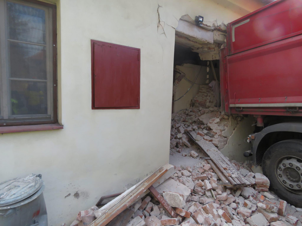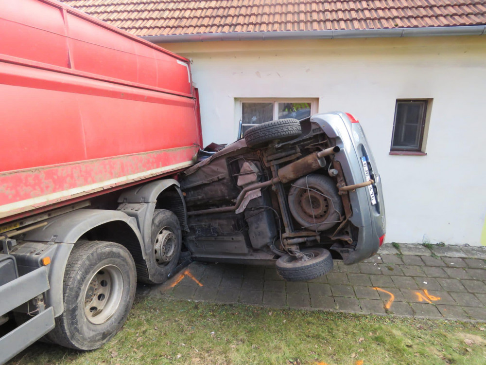 Záchranné složky zasahují u nehody odtahovaného náklaďáku. V kopci se uvolnil a naboural do vozidel a domu