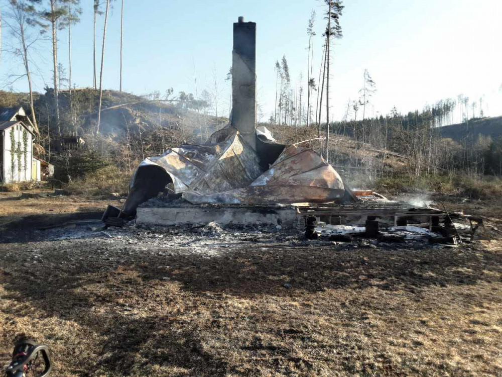 Požár dnes kompletně zničil chatu v Rounku. Někdo ji zřejmě úmyslně zapálil