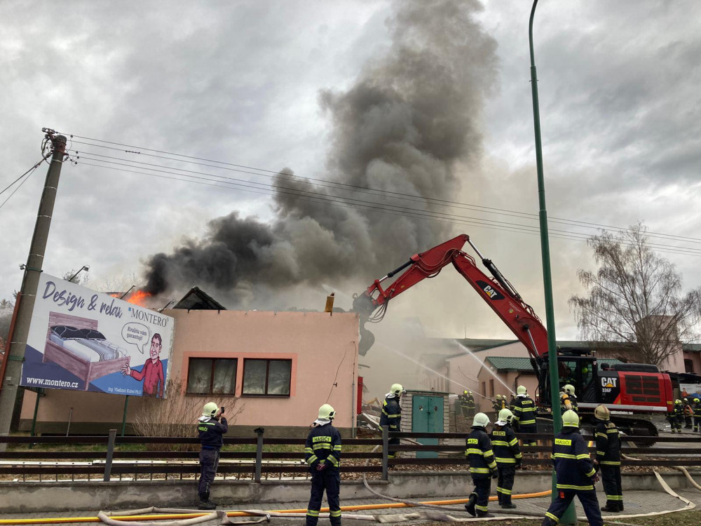 Čtrnáct jednotek vyjelo k požáru bývalé lakovny v Krucemburku. Škoda je odhadovaná na 1,5 milionu korun