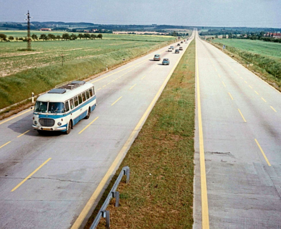 U obce Čestlice u Prahy byly v listopadu 1939 vybetonovány odstavné pruhy v šířce 2,25 m. Fotografie pochází ze šedesátých let, zdroj: ceskedalnice.cz