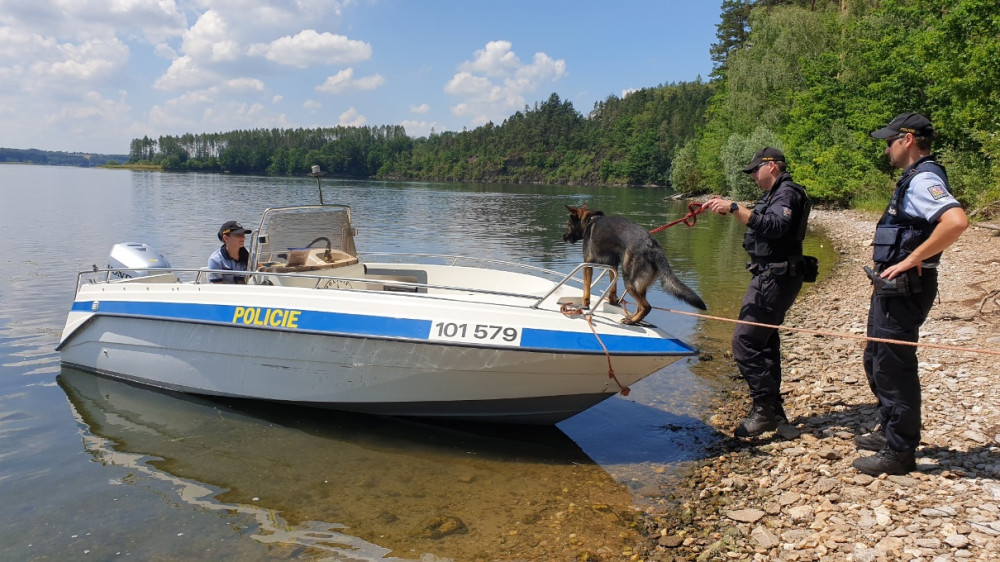 Kontroly na vodní nádrži Švihov. Lidé se zde koupali, ačkoliv je to zakázáno