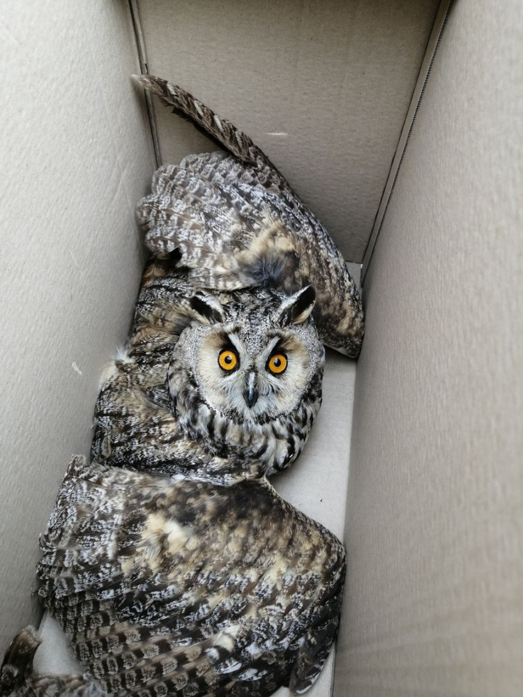 Kalous ušatý, který po nárazu do okna skončil v záchranné stanici v Polničce