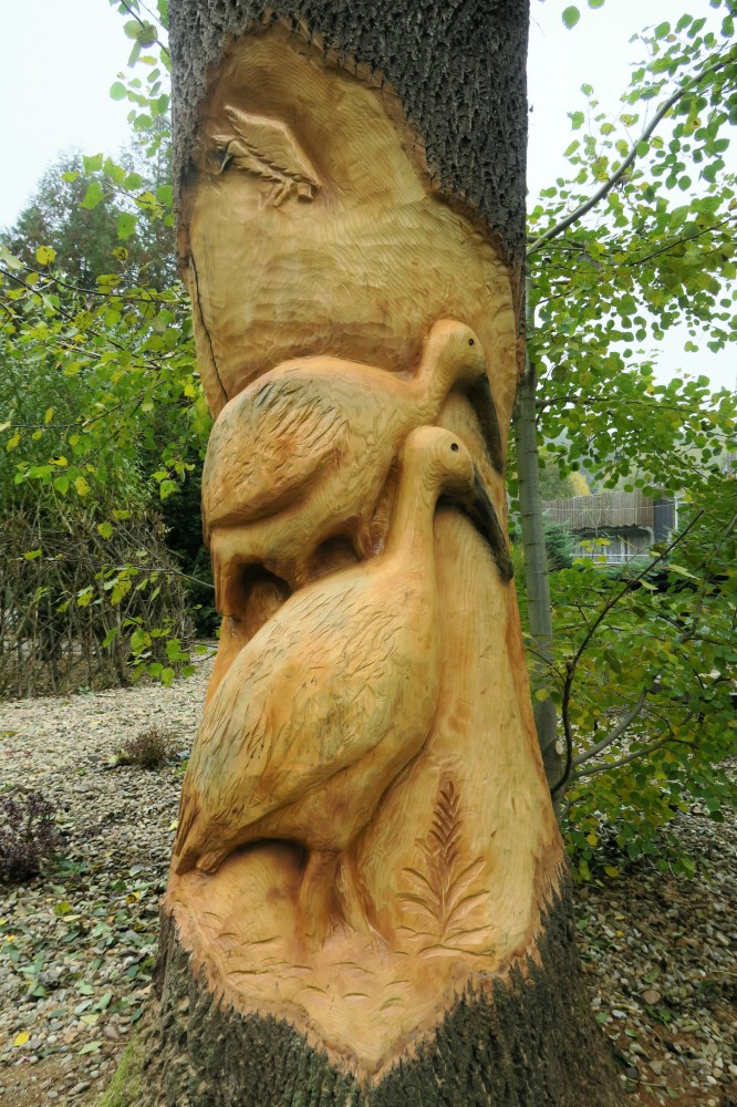 Jihlavskou zoo nově zdobí dvě dřevořezby plameňáků a ibisů
