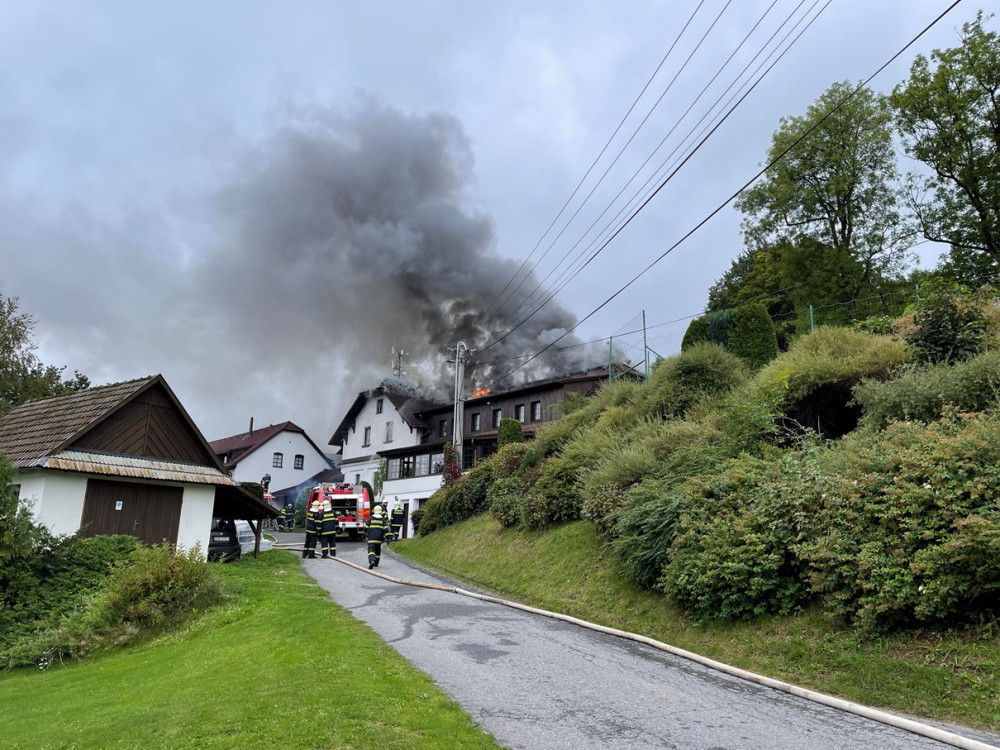 FOTO: V Daňkovicích hoří penzion. Byl vyhlášen třetí stupeň požárního poplachu