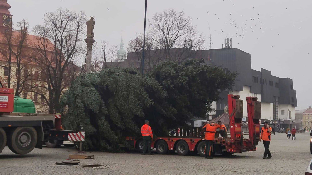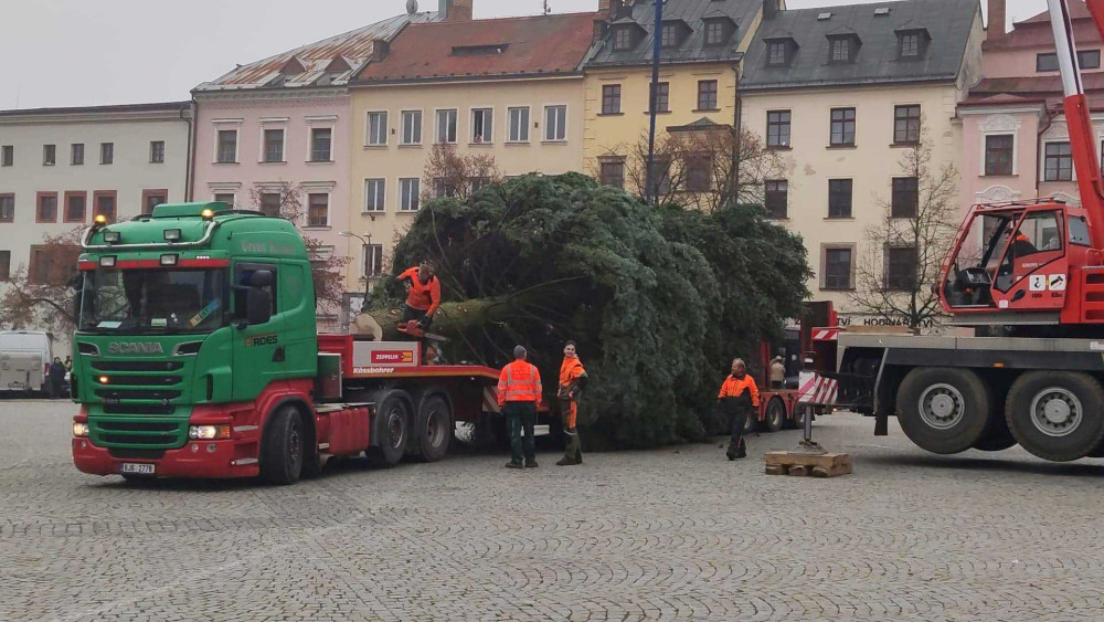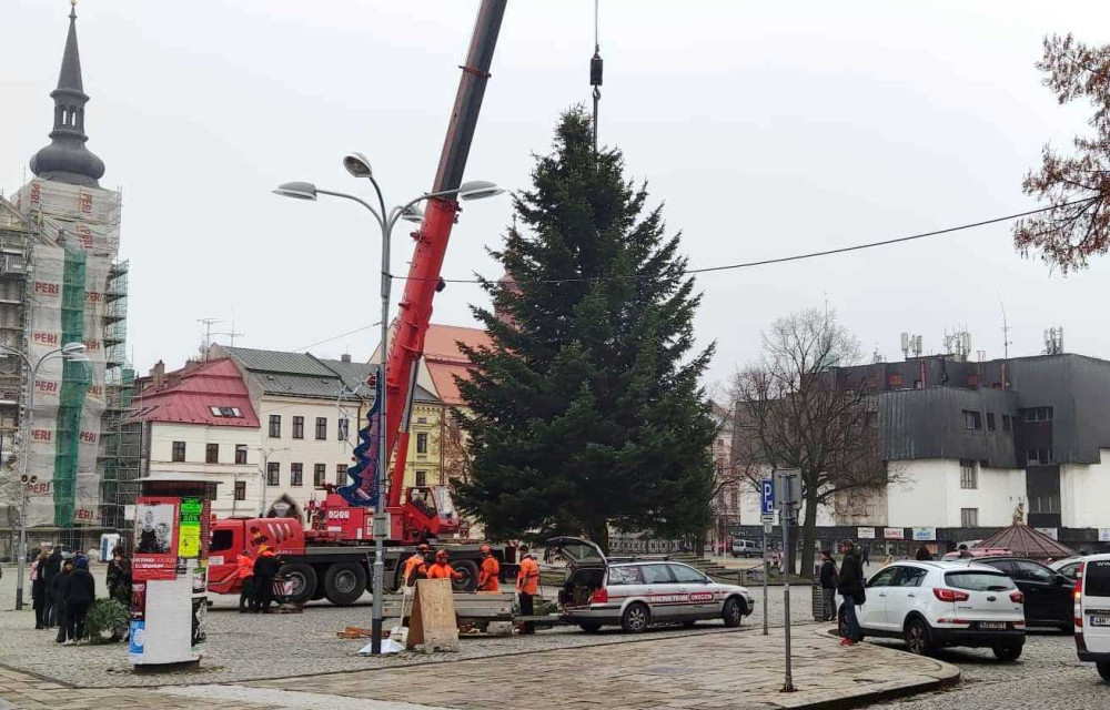 VIDEO: Jihlavský vánoční strom je už na svém místě. Ve středu začne zdobení, rozsvítí se 27. listopadu