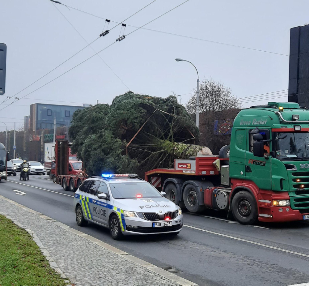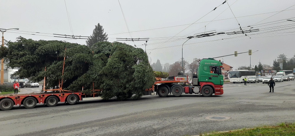 VIDEO: Jihlavský vánoční strom je už na svém místě. Podívejte se na jeho převoz na náměstí