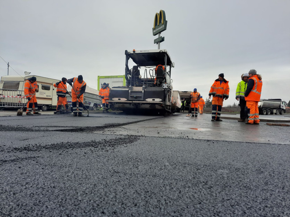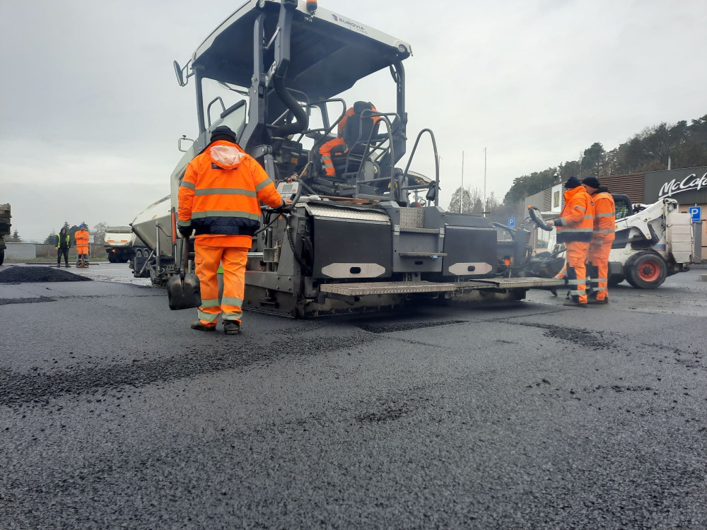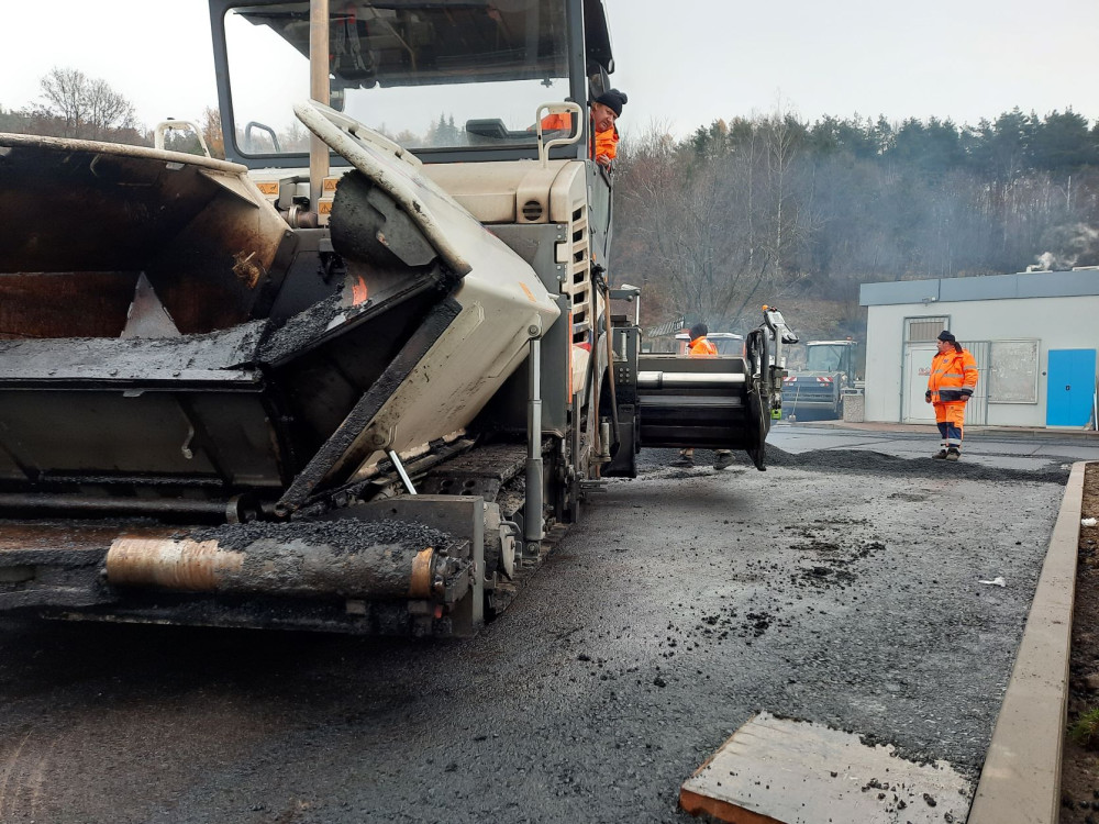 Fotografie z pokládky obrusné vrstvy v uplynulém týdnu