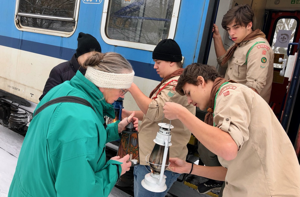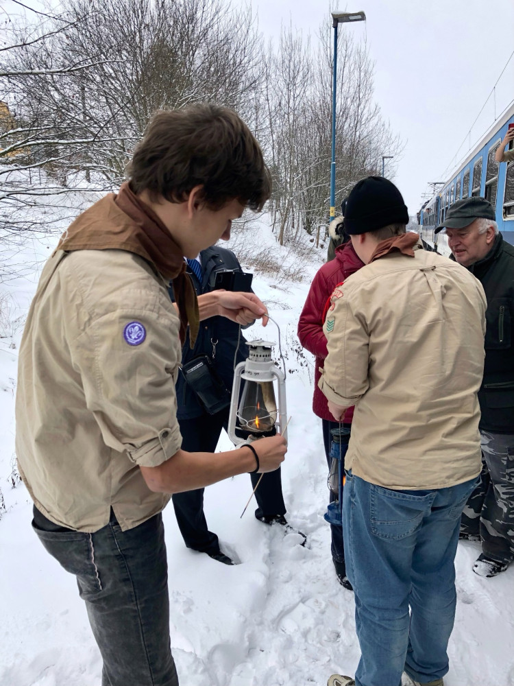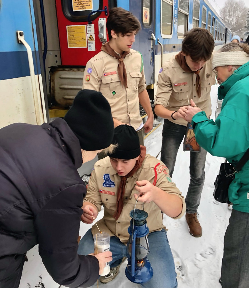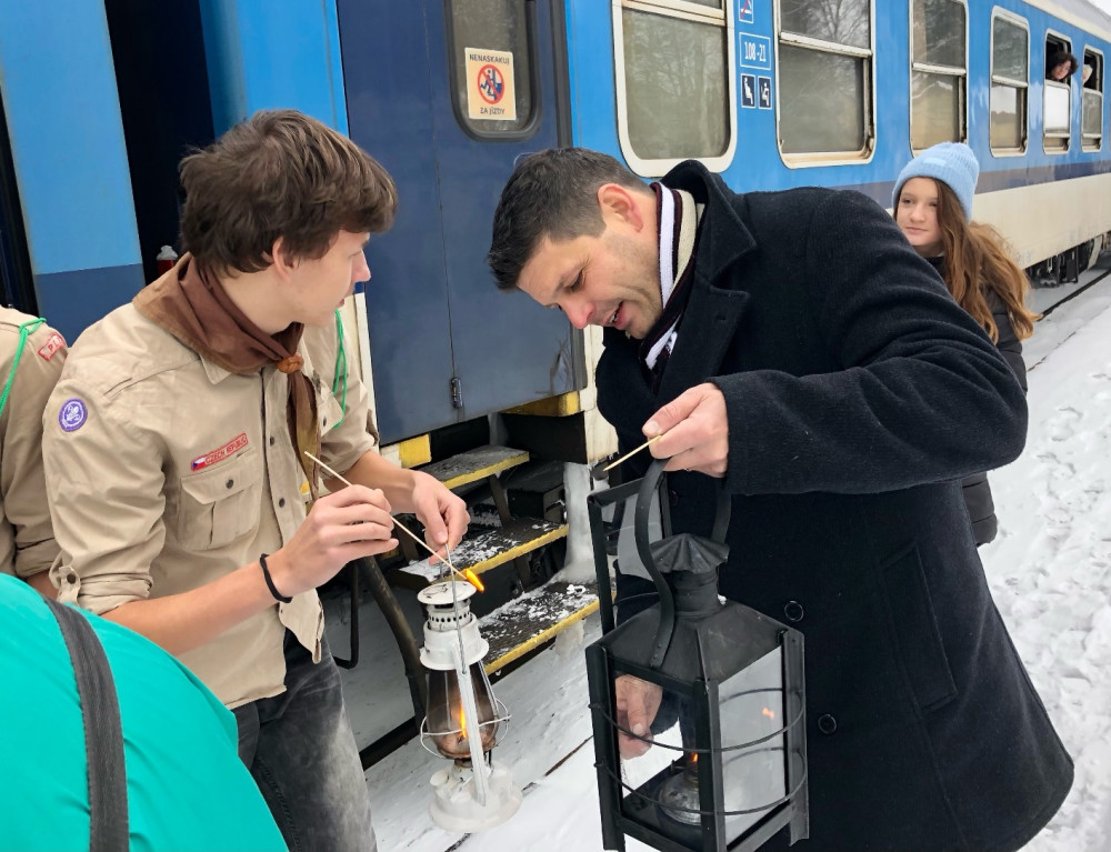 FOTO: Skauti dnes rozdávali Betlémské světlo. Plamínek se bude v týdnu rozdávat i na jihlavském náměstí