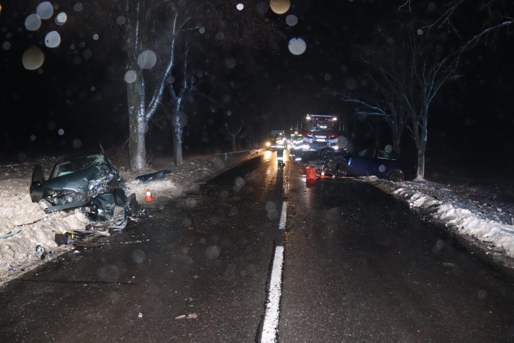 Ledovka v hlavní roli. Hrozivě vyhlížející čelní střet má za následek čtyři zraněné
