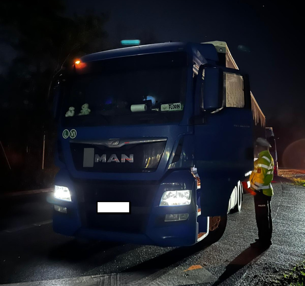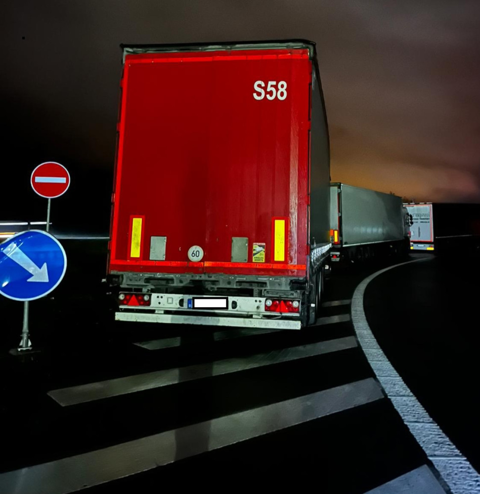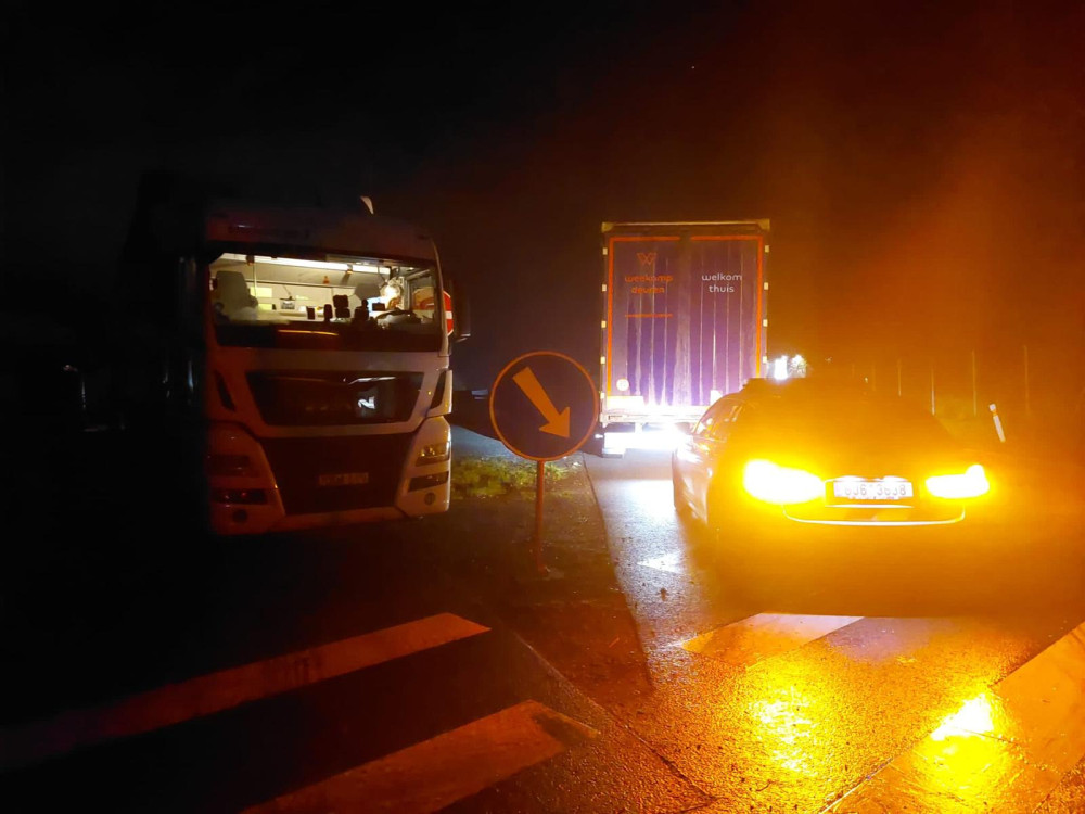 FOTO: Kontroly na D1. Policie ráno pokutovala řidiče kamionů, kteří parkovali tam, kde neměli