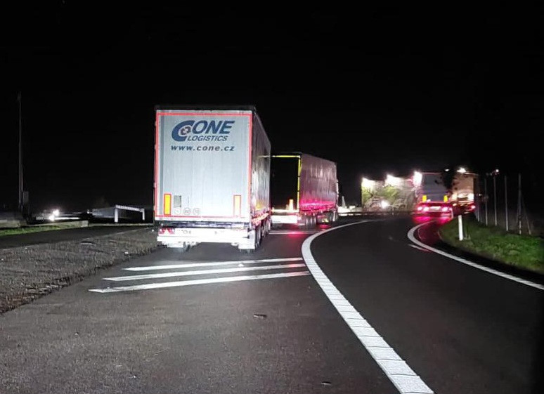 Kontroly na D1. Policie ráno pokutovala řidiče kamionů, kteří parkovali tam, kde neměli
