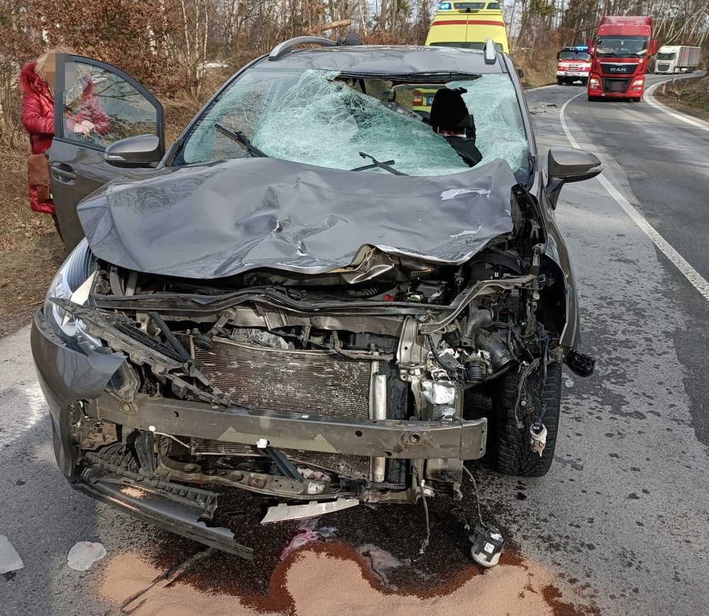Kus ledu spadlý z návěsu způsobil čtvrtmilionovou škodu na osobním autě a zranil dva cestující
