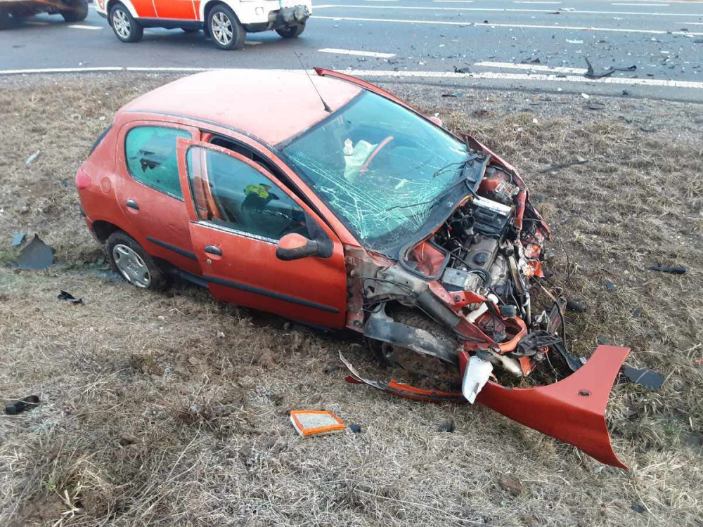 FOTO: U Velkého Beranova ráno bourala dvě osobní auta. Jeden člověk se zranil a skončil v péči lékařů