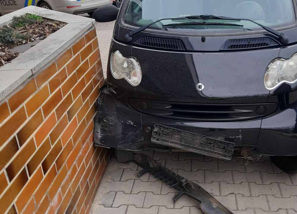 Opilá řidička ve Smartu vjela na chodník a narazila do zdi a sloupku. Nadýchala přes 2,5 promile