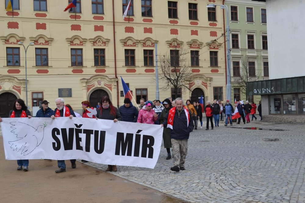 "Chcimíři" pochodovali Jihlavou, na dva účastníky s ukrajinskou vlajkou létaly během hymny kamínky