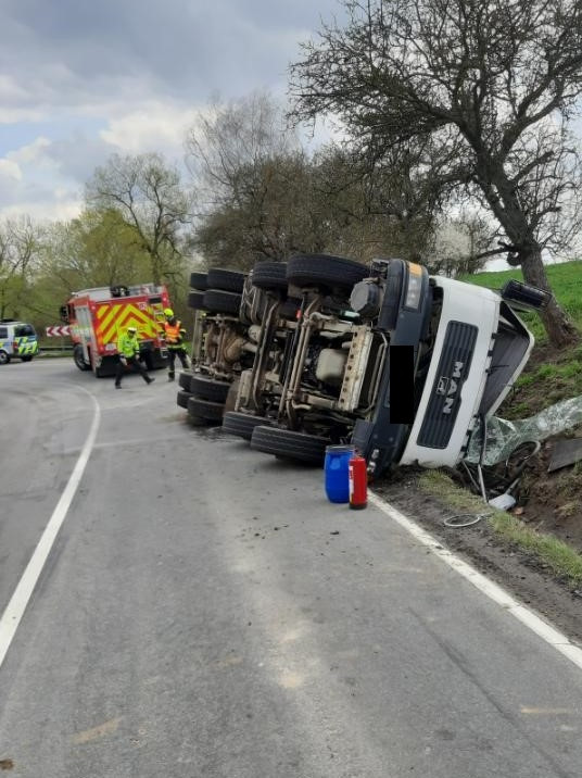 U Náměště havaroval řidič vezoucí beton, utrhla se s ním vozovka. Na řidiče čeká objížďka