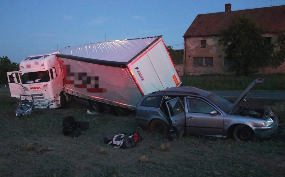 Osobní auto se v křižovatce srazilo s náklaďákem. Pro nezletilé spolujezdce musel přiletět vrtulník