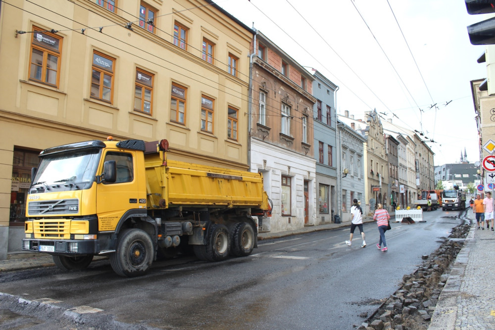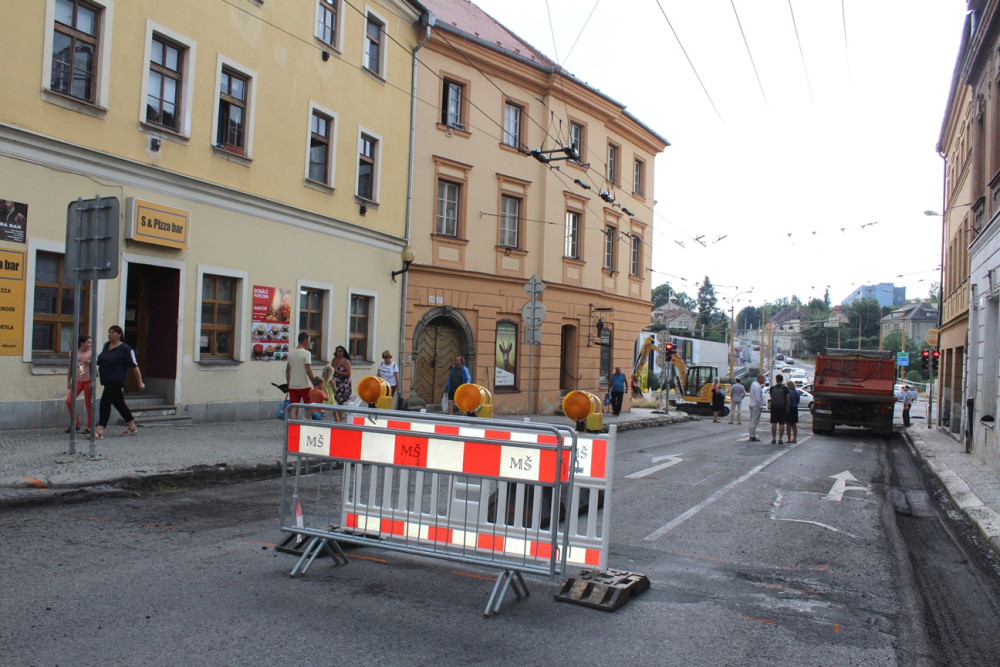 V centru Jihlavy se roky propadá vozovka. Spodní vjezd na náměstí je teď uzavřený
