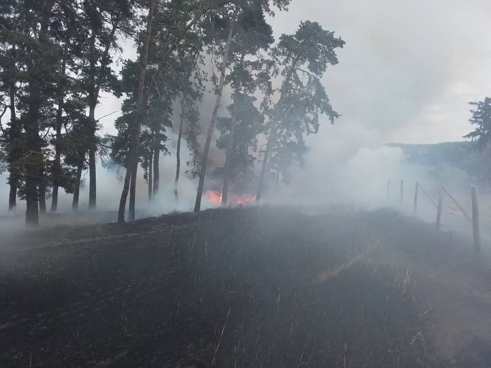 Sedm jednotek hasičů bojovalo s rozsáhlým požárem na Třebíčsku. Byl vyhlášen druhý stupeň poplachu