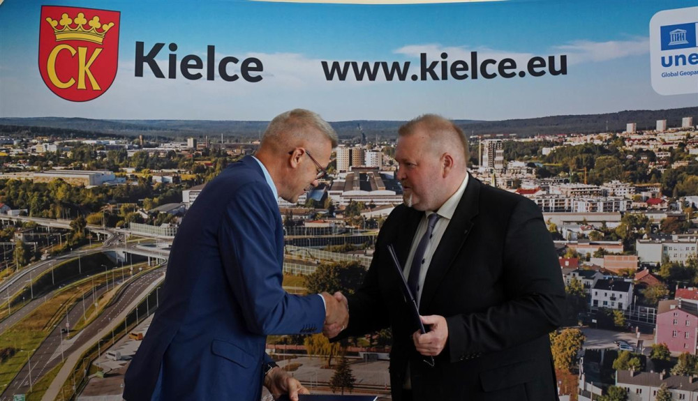 (Zleva) starosta města Kielce Bogdan Wenta, místostarosta Třebíče Miloš Hrůza