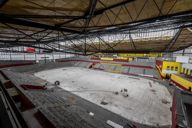 Stát potvrdil dotaci, stadion je vyklizen a může se bourat. Dělníci již staví stěny proti hluku a prachu