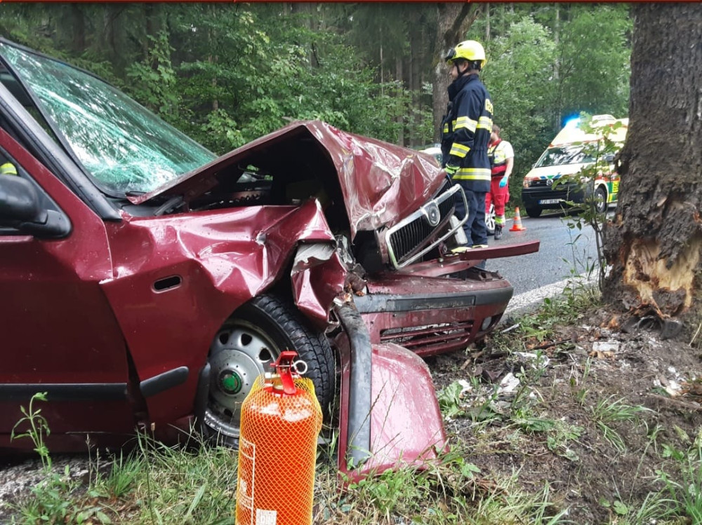Řidička u Nového Města narazila do stromu. Zranila se a skončila v nemocnici