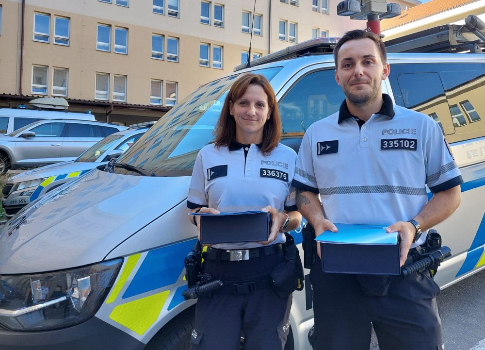 Oceněná policistka Alena Frank a její kolega Tomáš Vendl